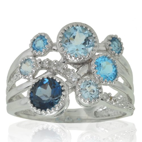 Review Best : 10k White Gold Blue Topaz and Diamond Ring (.06 cttw, I-J Color, I1 Clarity), Size 7