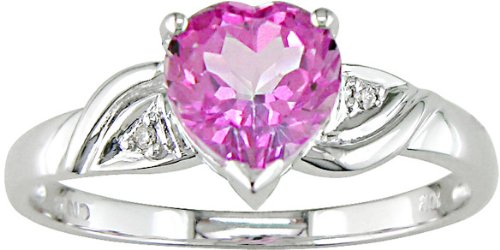 Low Price : 10K White Gold .01 ctw Diamond and Pink Topaz Heart Ring